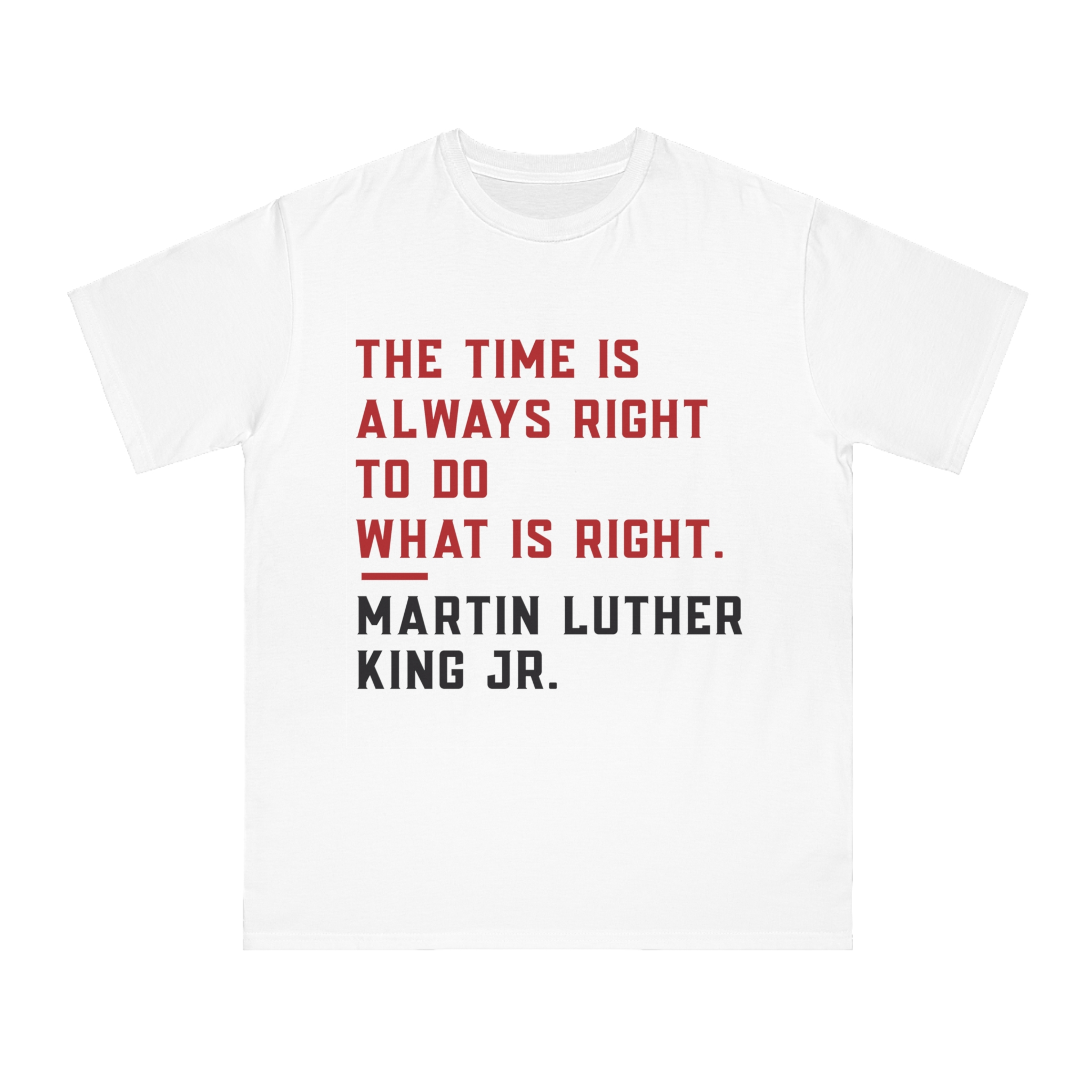 Introducing our Organic Unisex Classic T-Shirt, combining comfort, sustainability, and purpose. Made from 100% certified organic cotton, this soft and breathable tee offers all-day coziness while promoting eco-conscious fashion. Featuring Martin Luther King Jr.’s iconic quote, “The time is always right to do what is right,” this design celebrates justice, integrity, and courage. Perfect for casual outings, lounging at home, or as a meaningful gift during Black History Month or the holiday season, this versatile shirt blends timeless style with a powerful message, inspiring action and positivity wherever it’s worn.