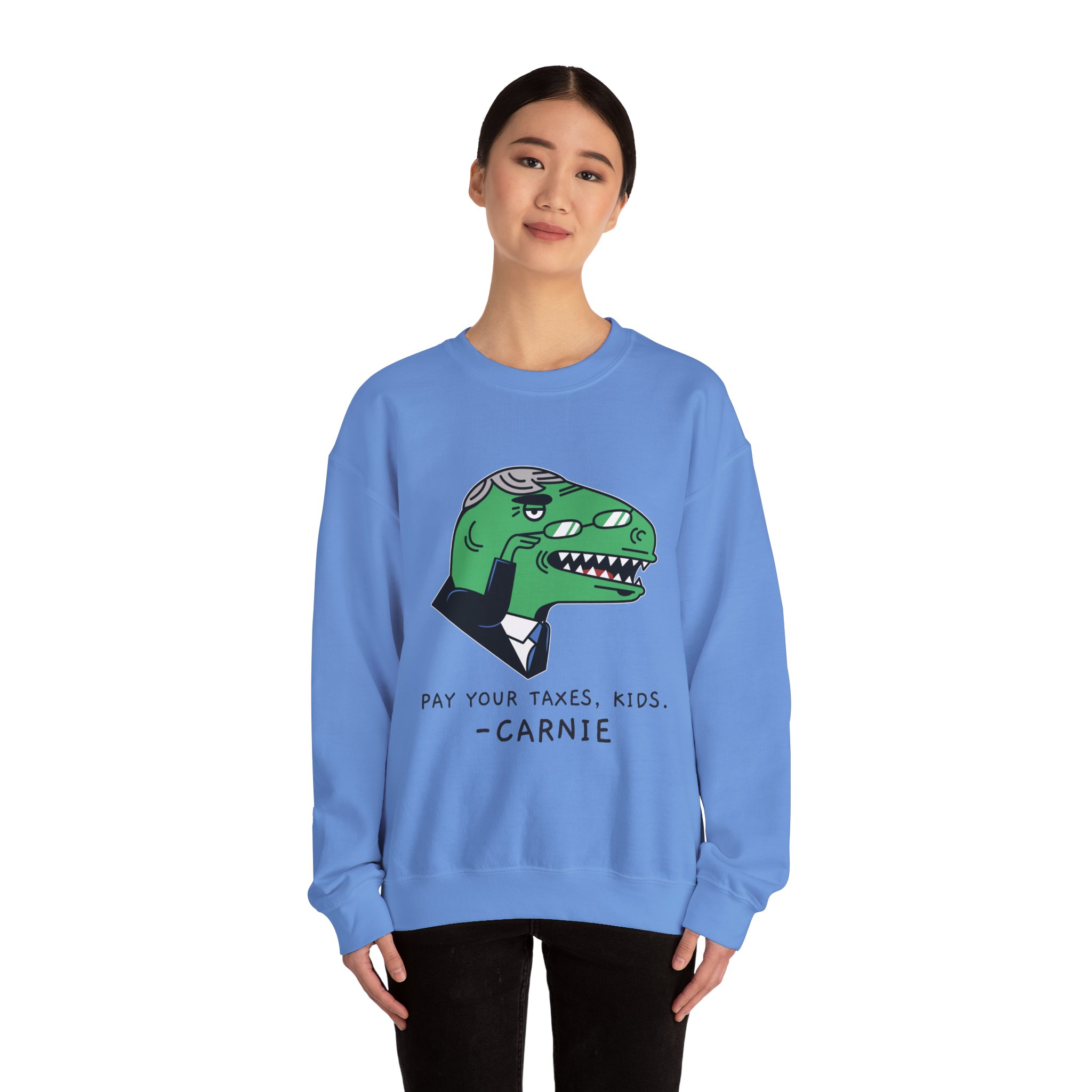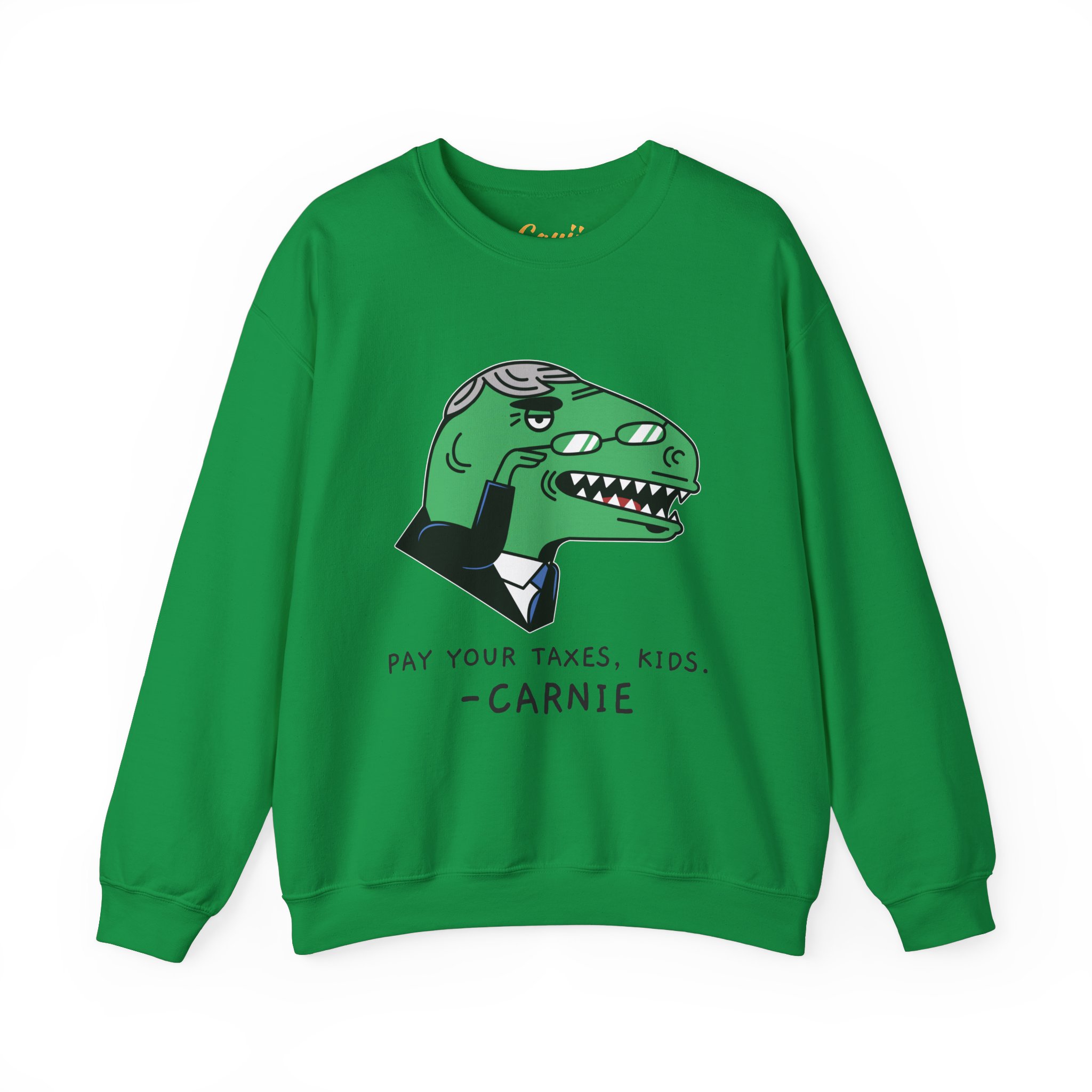 Pay Your Taxes, Kids – Carnie Dino Financial Advice Funny Nostalgic Unisex Sweatshirt