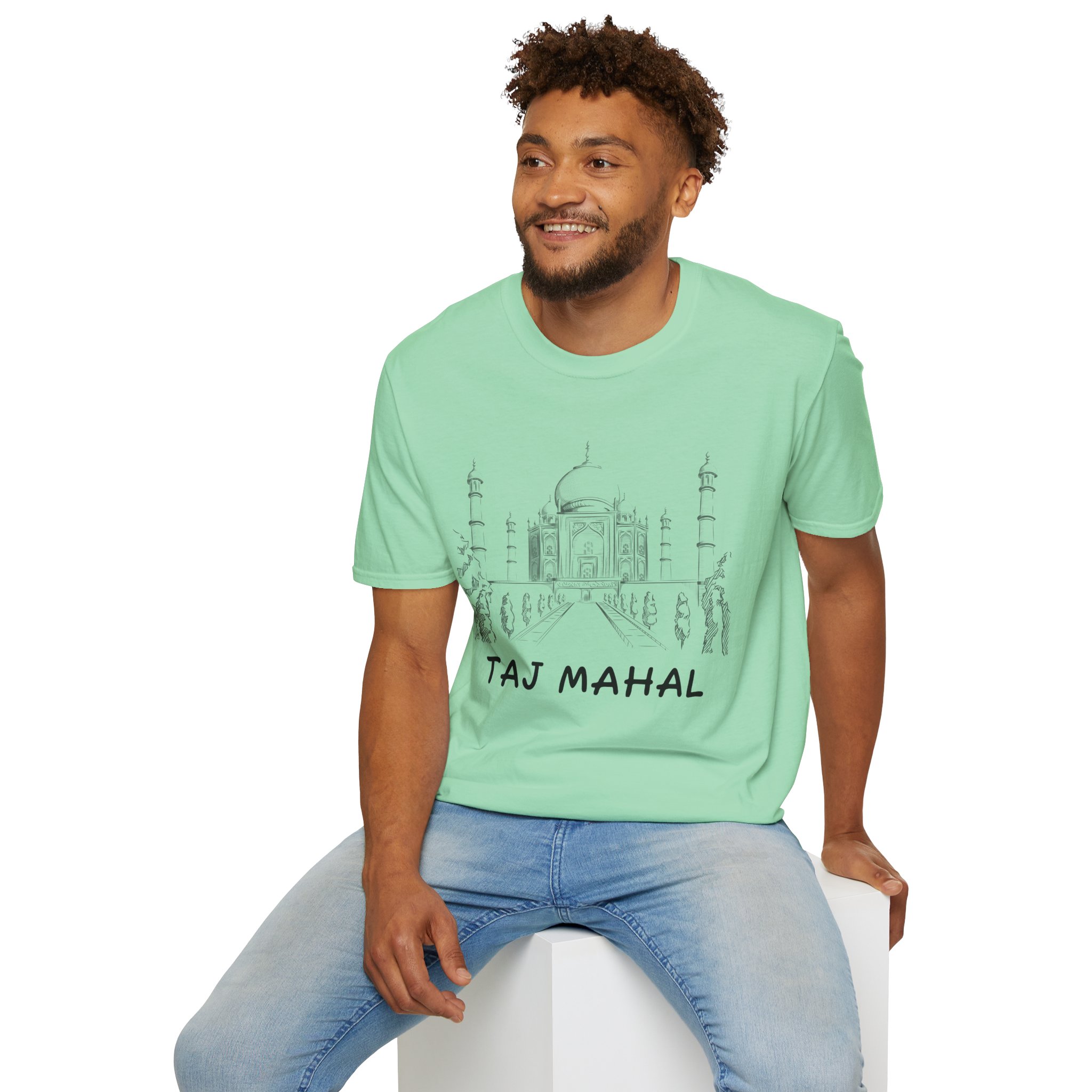Taj Mahal Minimalist Unisex T-Shirt – Artistic Sketch Design for Travel Lovers